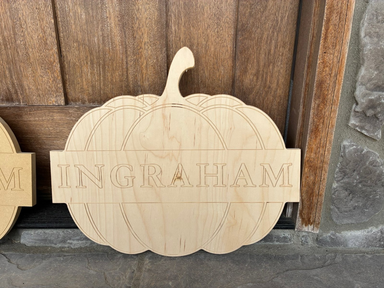 Add a personal touch to your fall décor with a custom nameplate pumpkin. Each piece is CNC-carved from quality plywood and personalized with your family name or message — perfect for your entryway, porch, or holiday table. This sign comes unfinished (not painted or stained), making it ideal for those who love to paint or […]